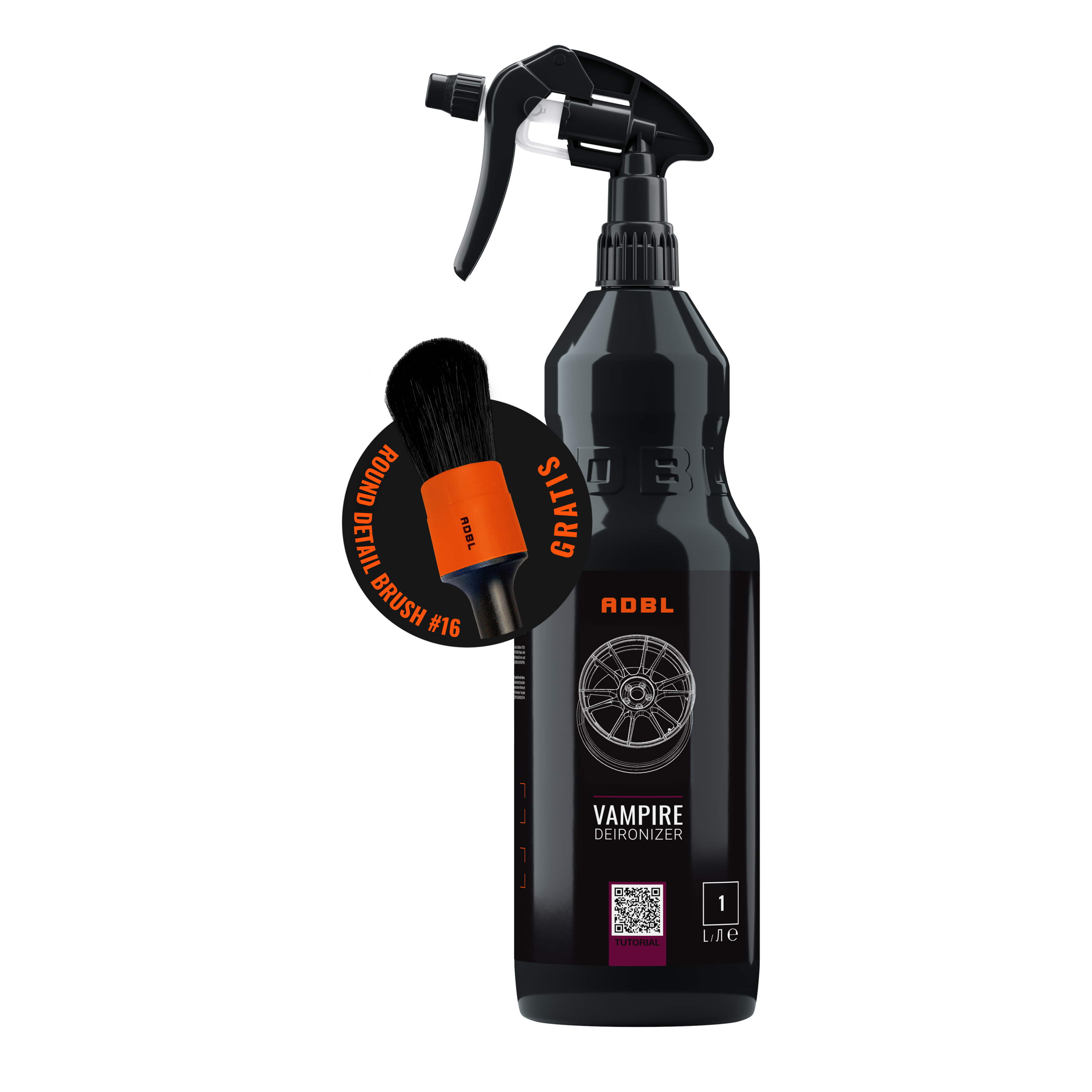 The ADBL Vampire delivers powerful deionising performance for both rims and paintwork. This heavy-duty formula dissolves deeply embedded metallic contaminants, including brake dust and volatile rust. Its thick gel consistency ensures slow drying and extended dwell time for maximum cleaning power. With a neutral pH, ADBL Vampire is safe for all wheel types - unvarnished, anodised or polished aluminium.