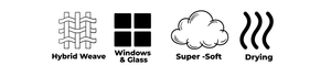 One side features an advanced hybrid weave combining ultra-soft terry and twist loop microfibre to glide smoothly across glass and deliver a streak-free finish. The reverse side uses premium twist loop microfibre for enhanced absorbency, removing remaining moisture with minimal effort.